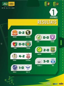 Au stade Omnisports Ahmadou Ahidjo de Yaoundé, Canon sportif et Stade Renard se sont neutralisés (0-0). Panthère sportive du Ndé a sorti les griffes contre Fauve Azur au stade municipal de Bandjoun. A l’issue de cette première journée, on a enregistré 5 victoires pour deux matchs nuls. Au total, 14 buts ont été inscrits. Dynamo de Douala a la meilleure attaque avec quatre buts inscrits.